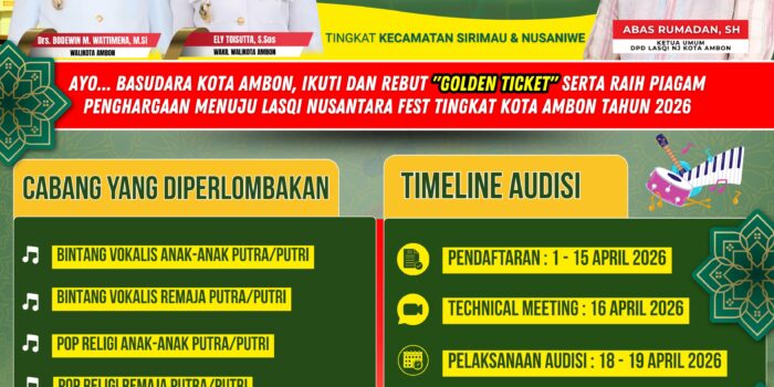 Ambon, NusaInaNews.com – Pemerintah Kota Ambon kembali menggelar Safari Ramadan 1447 Hijriah/2026 Masehi yang dipusatkan di halaman Masjid Baiturrahman Waiheru, Kecamatan Teluk