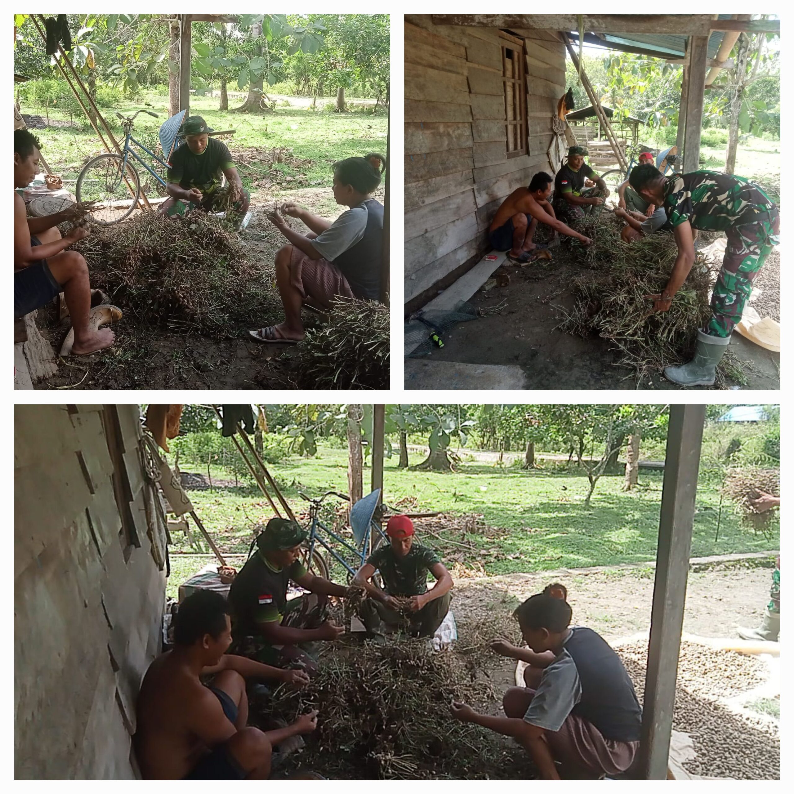 Anggota Satgas TMMD Ke-120 Ikut Panen Dan Membersihkan Sisa-sisa Kacang.