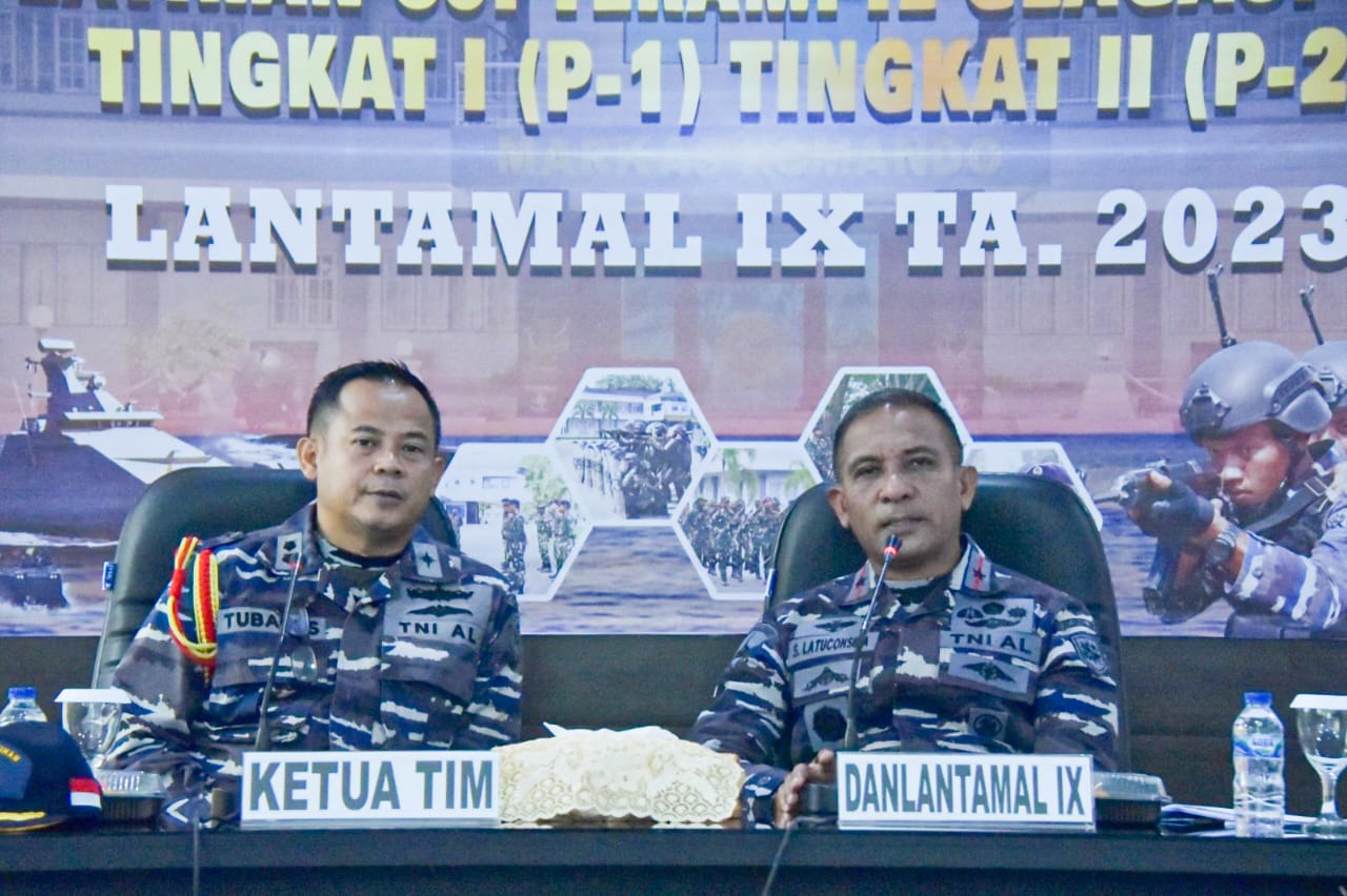 Ambon.malukubaru.com – Pangkalan Utama TNI Angkatan Laut (Lantamal) IX Ambon. Tingkatkan kemampuan pangkalan, Brigjen TNI (Mar) Said Latuconsina M.M., M.T., M.Tr. Opsla pimpin langsung Pembukaan Latihan Uji Terampil Gladi Tugas Tempur (Glagaspur) Tingkat I-II (P1-P2) Lantamal IX tahun anggaran 2023 bertempat di Mako Lantamal IX, Halong, Kota Ambon. Senin (30/20/23)