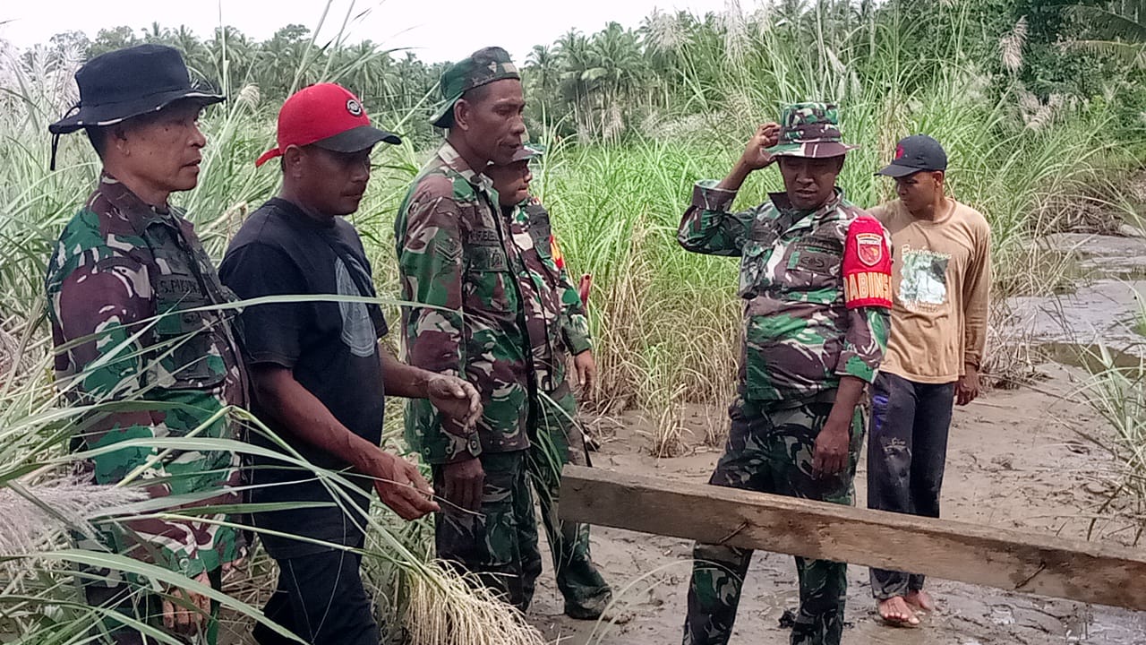 NusaInaNews.Com.Namrole, – Danramil 1506-05/Wamsisi, Lettu inf Salem Pusung, Bersama anggota Koramil membantu masyarakat Desa Batukasa dan Desa Waemasing untuk memperbaiki jembatan Gantung Nala yang menghubungkan Desa Batu kasa dan Desa Waemasing yang mengalami kerusakan akibat diterjang banjir, di Kecamatan Waesama, Kabupaten Buru Selatan.