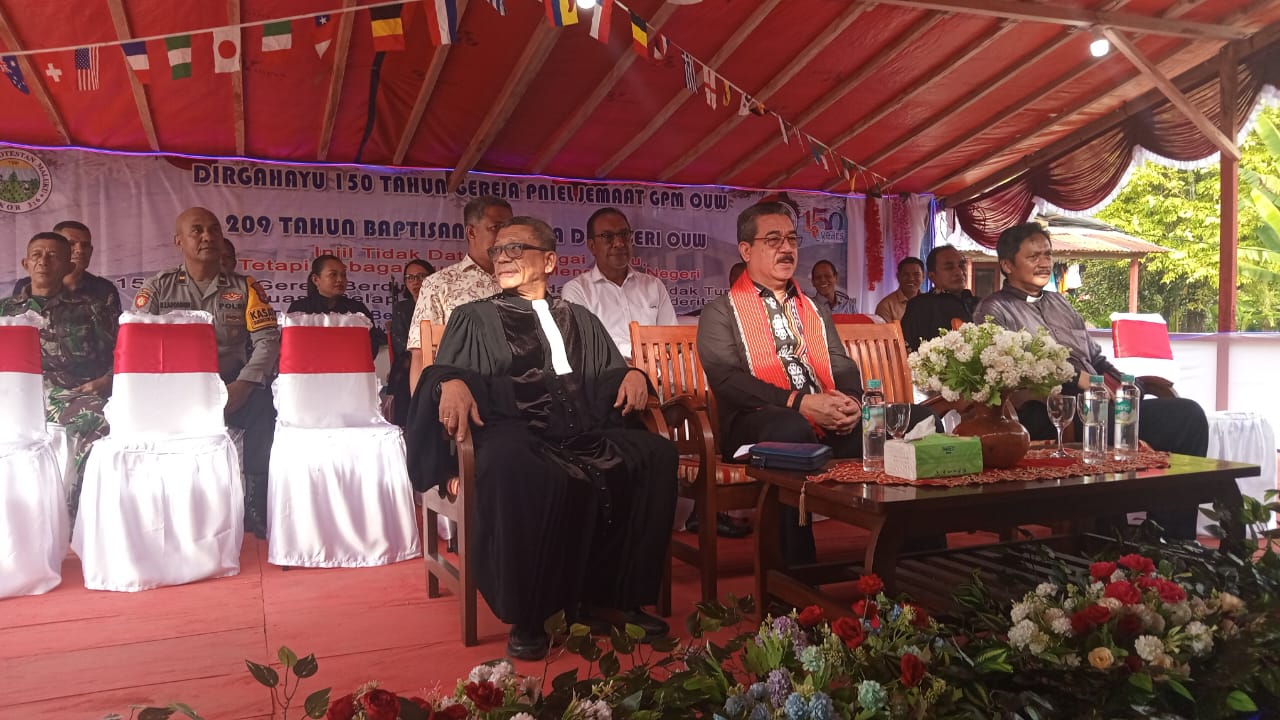 Gubernur juga menyampaikan apresiasi kepada Ketua Majelis Jemaat, para pelayan gereja, Pemerintah Negeri, panitia perayaan, serta seluruh warga Jemaat GPM Ouw, baik yang berada di kampung halaman maupun di perantauan, atas kesetiaan mereka merawat Gedung Gereja PNIEL dan menjaga warisan iman Baptisan pertama.