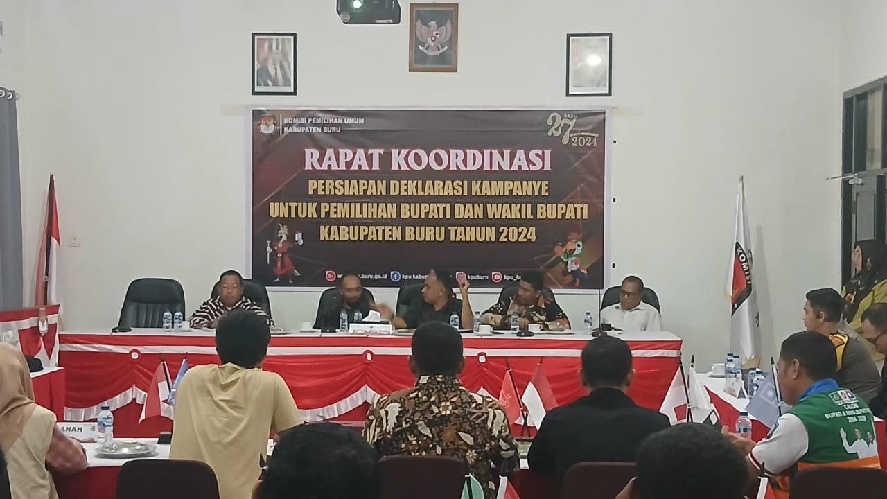 Nusainanews.com.Namlea, – Komisi Pemilihan Umum (KPU) Kabupaten Buru menggelar rapat kordinasi kampanye pemilihan Bupati dan Wakil Bupati Buru pada Pilakada 2024.