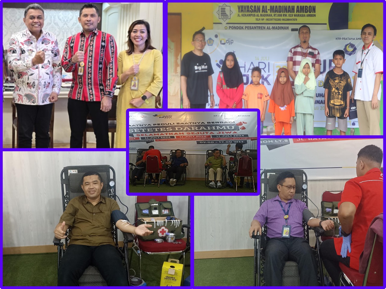 AMBON, Nusainanews.com – Dengan tagline “Saatnya Peduli Saatnya Berbagi”, Kantor Pelayanan Pajak (KPP) Pratama Ambon menyelenggarakan aksi sosial Donor Darah pada Kamis, (11/7/24) di lantai V Gedung Keuangan Negara Ambon.