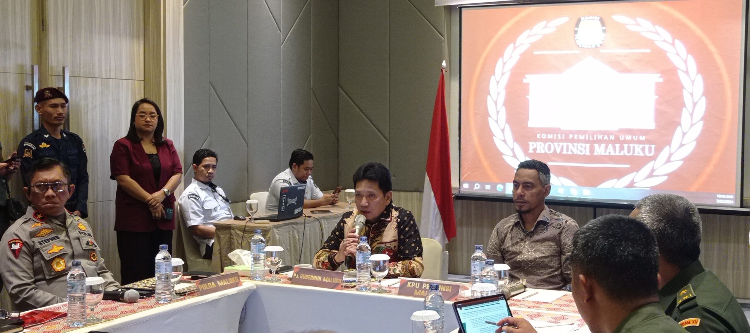 Dihadiri oleh Pj. Gubernur Maluku Ir. Sadali Ie, Forkopimda Provinsi Maluku, Ketua KPU Provinsi Maluku beserta jajaran, anggota DPRD Provinsi Maluku, pimpinan TNI/Polri, pimpinan OPD di lingkup Pemerintah Provinsi Maluku, para pimpinan vertikal, serta pimpinan Bawaslu Provinsi Maluku.