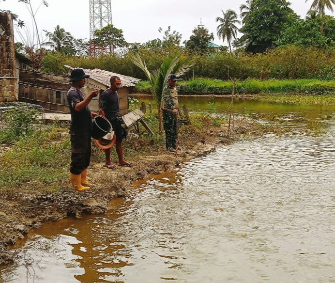 Nusainanwes.com.Namlea, – Bekerjasama dengan masyarakat untuk meningkatkan hasil panen ikan dan bersilaturahmi, sekaligus melaksanakan pendampingan, Anggota satgas TMMD ke-120 Kodim 1506/Namlea, Sertu Yudha bantu beri makan ikan yang baru berusia 135 hari sebanyak 1.000 ekor beserta 2 orang masyarakat di kolam milik Bapak Nasriadi, Desa Waenetat Kecamatan Waeapo, Kabupaten Buru. Selasa ( 21/05/2024 ).