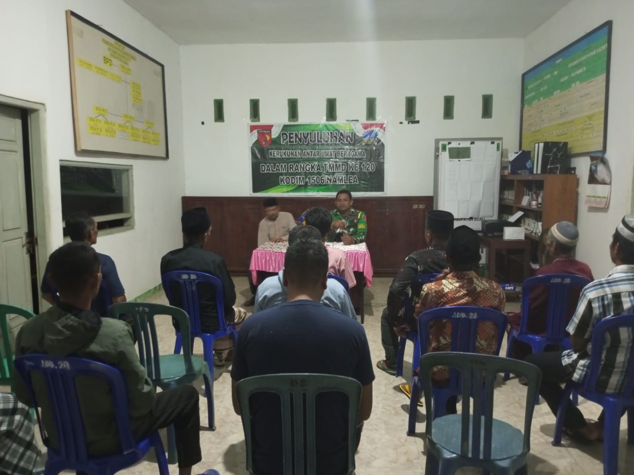 TMMD Kodim 1506/Namlea dengan bekerjasama dengan SKUB Kab Buru memberikan penyuluhan kepada para Warga Sekitar tentang Kerukunan Umat Beragama yang disampaikan oleh H Zainal Abidin SKUB Kabupaten Buru.