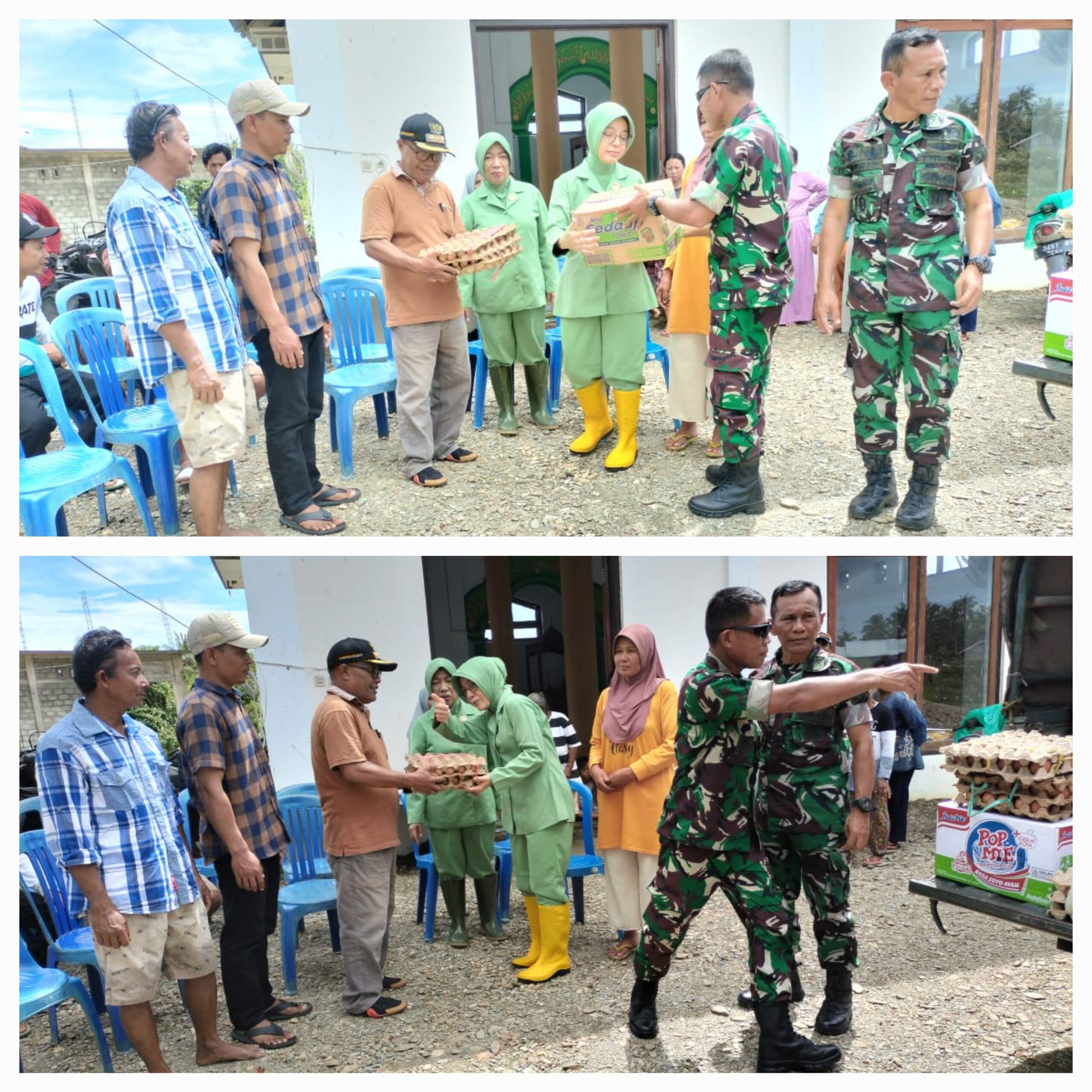 Ketua Persit Kartika Candra Kirana Cabang XXIX Kodim 1506/Namlea, Ibu Fasmineita Fauzia, bersama rombongan membagikan sembako BANSOS kepada pengungsi di posko yang berada di Mesjid Al-Istikomah Dusun Air Mendidih.