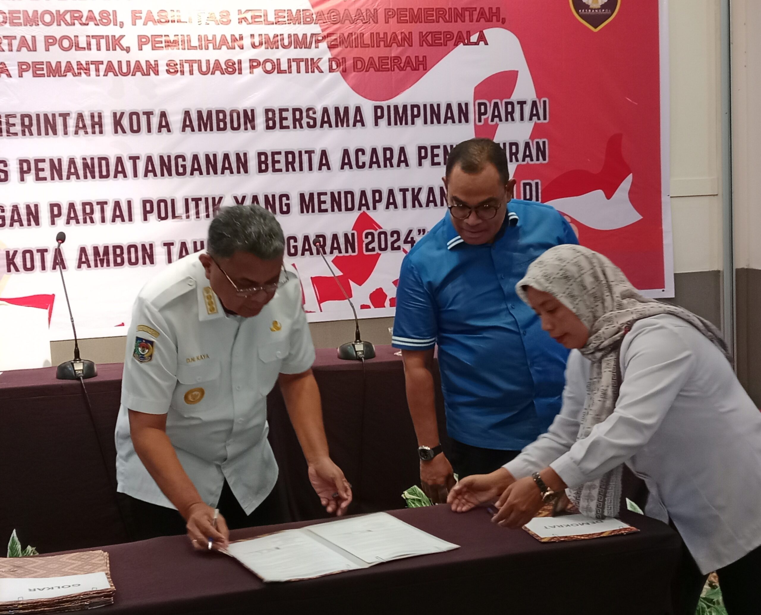 Ambon, Nusainanews.com – Pemerintah Kota (Pemkot) Ambon melakukan penandatanganan bantuan keuangan kepada Partai politik (Parpol) di Kota Ambon sesuai dengan aturan yang berlaku guna melancarkan tugas-tugas partai dalam melaksanakan kegiatan Partai di Pilkada 2024 Pemilihan Gubernur, Wakil Gubernur Maluku, serta Walikota dan Wakil Walikota Ambon.