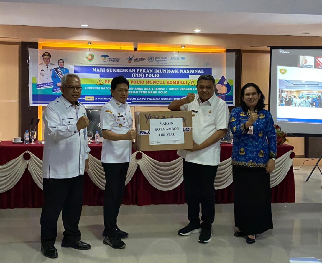 AMBON, Nusainanews.com – Sukseskan Pekan Imunisasi Nasional (PIN) Polio, Penjabat Gubernur Maluku Ir. Sadali Ie, M.Si. IPU, menyerahkan secara simbolis Vaksin Polio, kepada Penjabat Walikota Ambon Dominggus N. Kaya, S.Sos., M.Si, pada Rabu (17/7/2024) Pukul 10:00 WIT, berpusat di Kantor Dinas Kesehatan Provinsi Maluku.