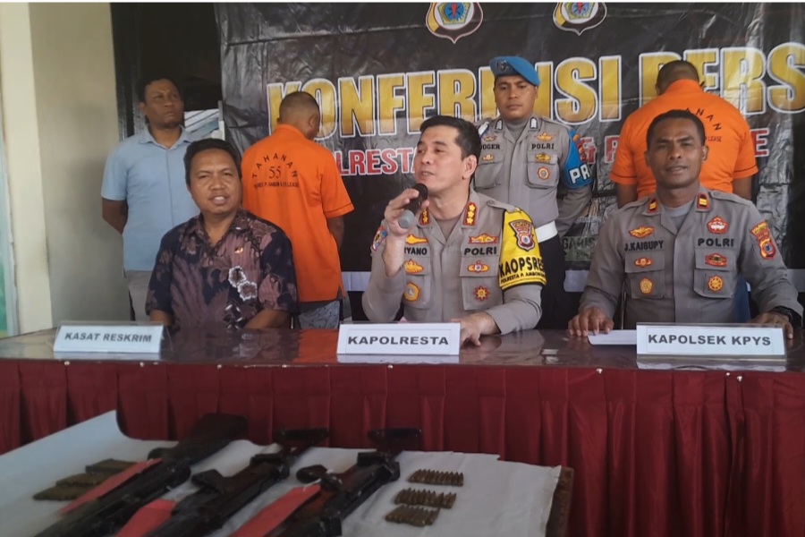 Kapolresta Pulau Ambon dan Pulau-pulau Lease, Kombes Pol Driyano Andri Ibrahim yang didampingi Kasat Reskrim AKP La Beli, dan Kapolsek KPYS Iptu, Julkisno Kaisupy dalam jumpa pers Jumat 17 November 2023 di Makopolresta Ambon  menjelaskan , Polresta Pulau Ambon berhasil  mengungkap Rencana Perdagangan Senjata  Senpin rakitan yang direncanakan dijual di luar kota Ambon  yaitu ke Papau. “Jadi Senin (13/11/2022) sekira pukul 00.00 WIT, personel gabungan memeriksa barang bawaan penumpang KM Sirimau yang hendak  menuju Nabire, Papua.”