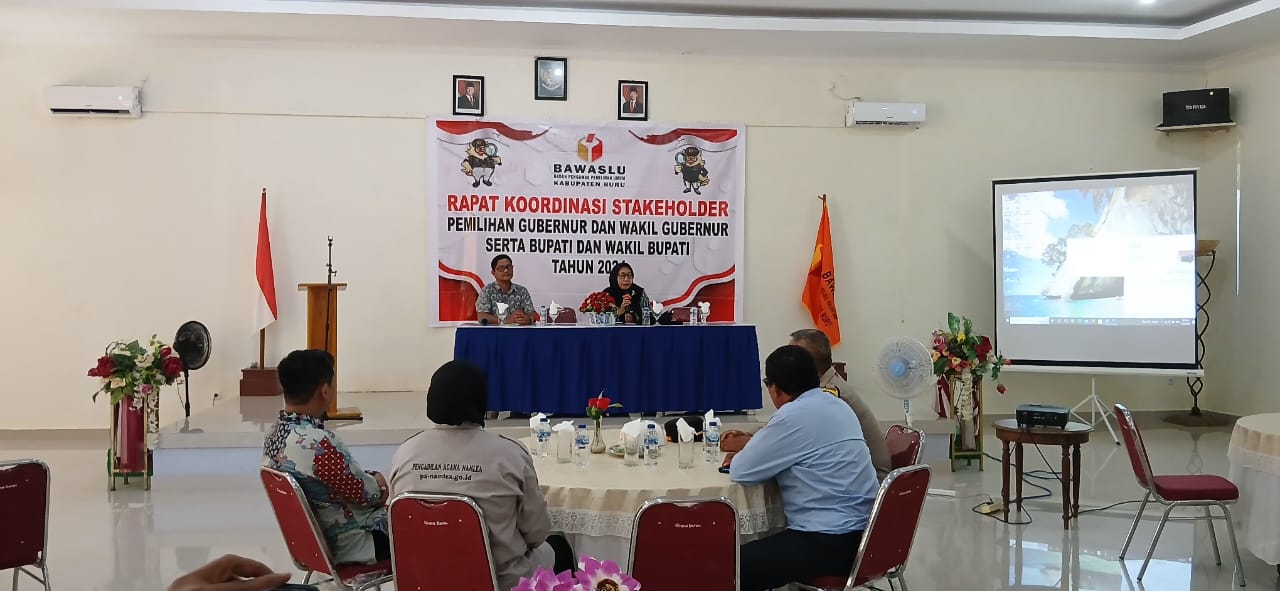 NusaInaNews.com – Bawaslu Buru melakukan rapat koordinasi stakeholder pemilihan Gubernur dan Wakil Gubernur serta Bupati dan Wakil Bupati Tahun 2024 yang berlangsung di Aula Hotel Gren Sarah Kota Namlea (23/11/2024).