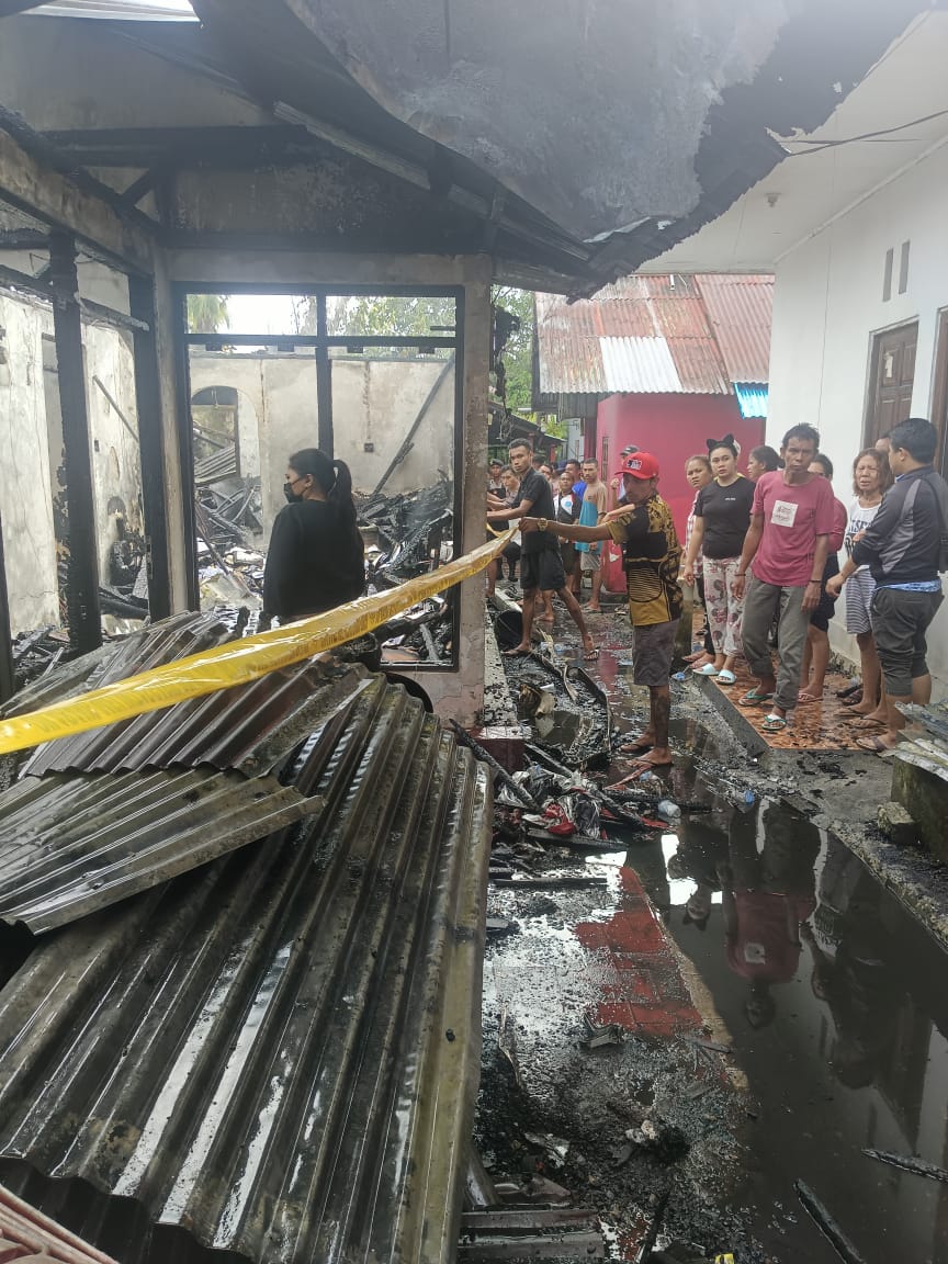 1 (Satu) unit Rumah Milik Kel. Jacob Manuputty terbakar habis,1 buah Kamar milik Kel. Ibu Margareth Wattimena yang berada di lantai 2 rumahnya dan berdekatan dengan rumah korban..