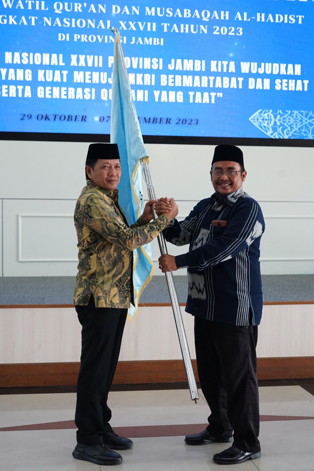 Di bawah sorotan tema “Dengan STQH Nasional XXVII Provinsi Jambi, Kita Wududkan Persaudaraan yang Kuat Menuju NKRI Bermartabat dan Sehat, Serta Generasi Qur’ani yang Taat”, pelepasan tersebut ditandai dengan Penyerahan Bendera, dan direncanakan kontingen akan diberangkatkan pada 28 Oktober 2023 mendatang.
