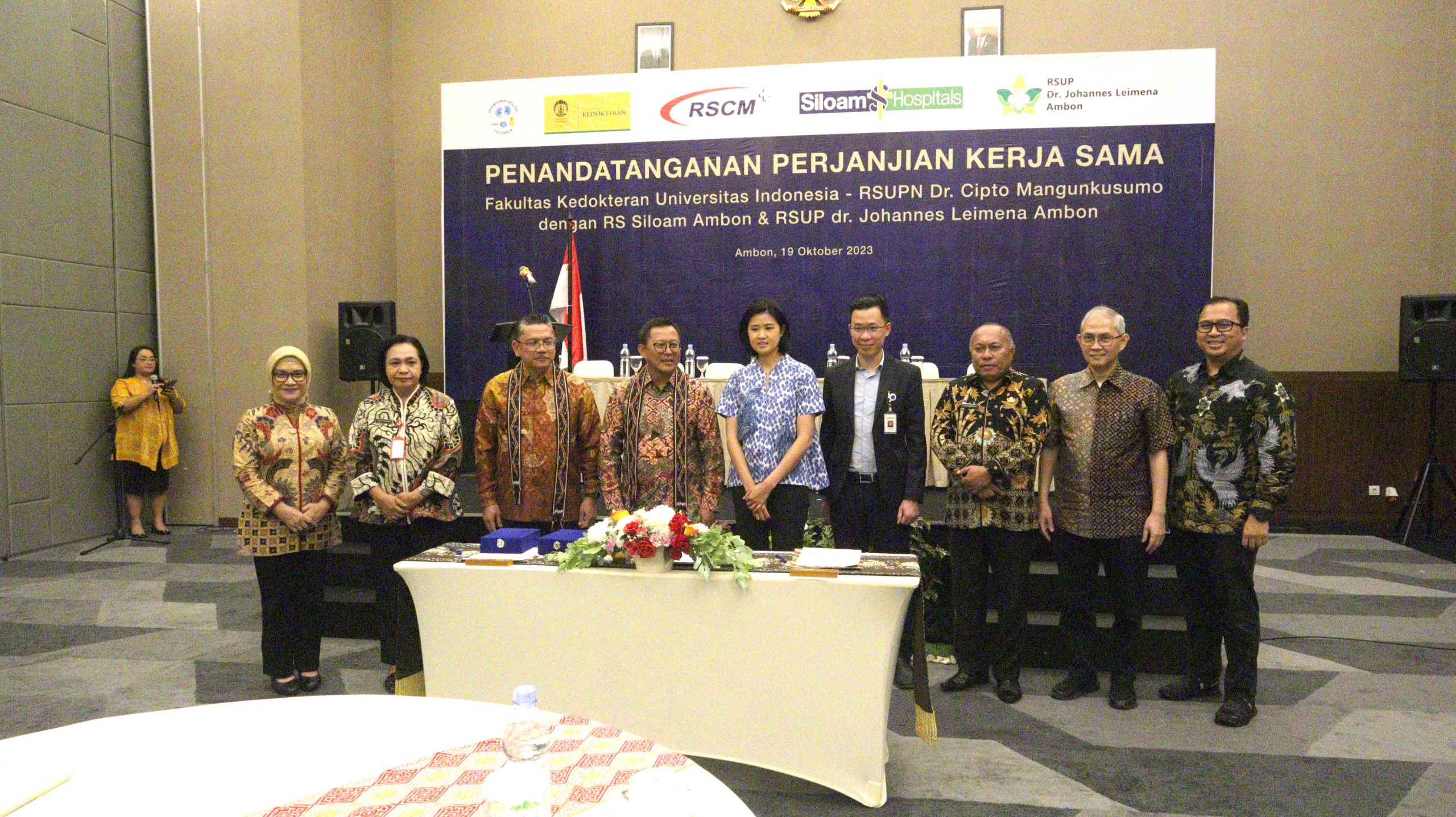 Hadir pada kesempatan itu, Kepala Dinas Kesehatan Kota Ambon, Sekretaris Dinas Kesehatan Provinsi Maluku, Kepala BPJS Kota Ambon, Dekan Fakultas Kedokteran UI dan Jajaran, PLT Direktur Utama RSUPN Cipto Mangunkusumo beserta jajaran, Manager Director Siloam Hospital Group, Hospital Direktor Siloam Hospital Ambon, dan Penjabat Pengawas Rumah Sakit, Direktur Utama RSUP Dr. J. Leimena, beserta unsur terkait lainnya.