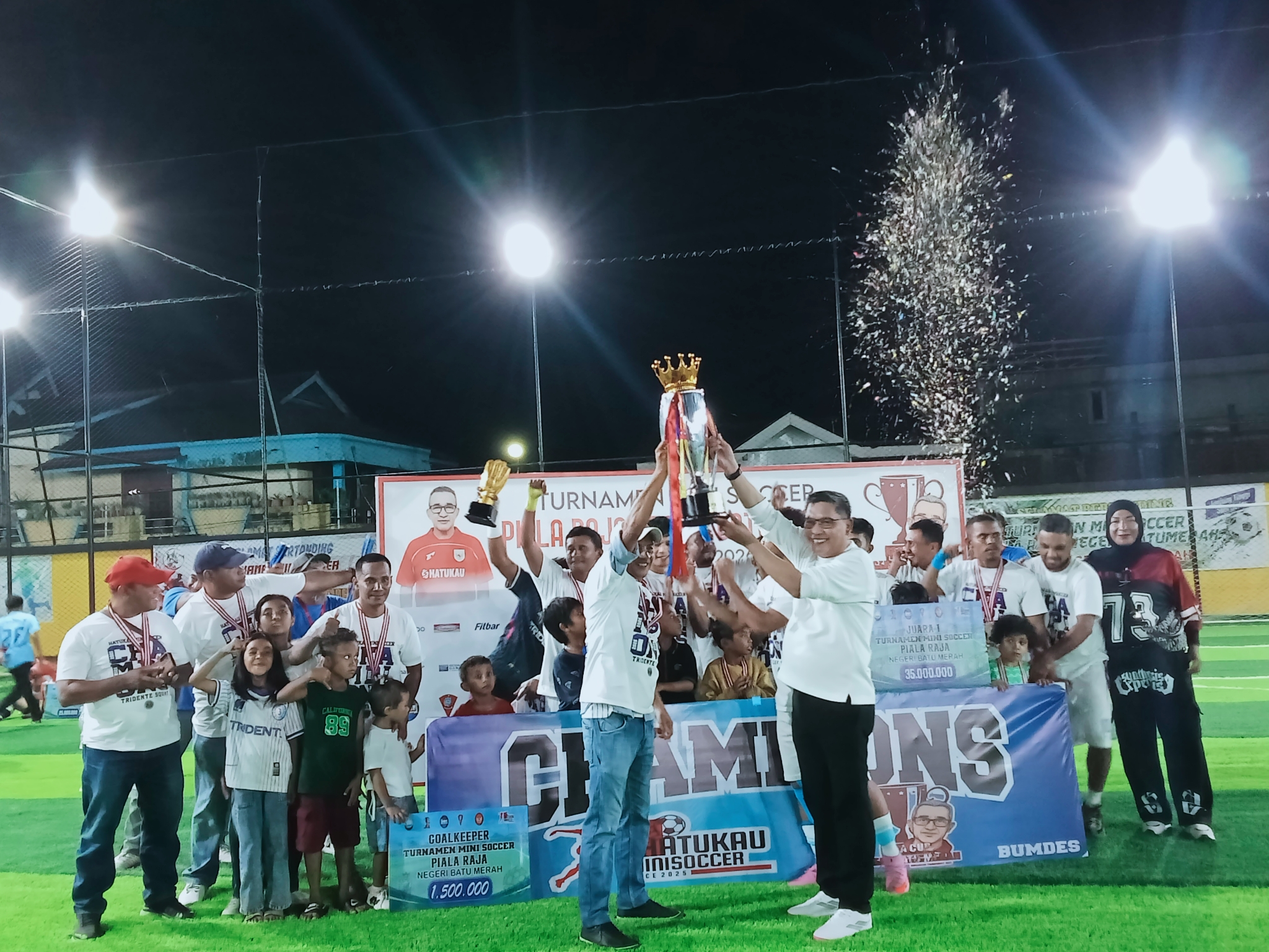 Ambon, NusaInaNews.com – Turnamen Mini Soccer Piala Raja Negeri Batumerah resmi ditutup pada Minggu (15/02/2026) malam di Lapangan Hatukau, Negeri Batumerah, Kota Ambon. Dalam partai final yang berlangsung meriah, Tridente FC asal Negeri Tulehu keluar sebagai juara.