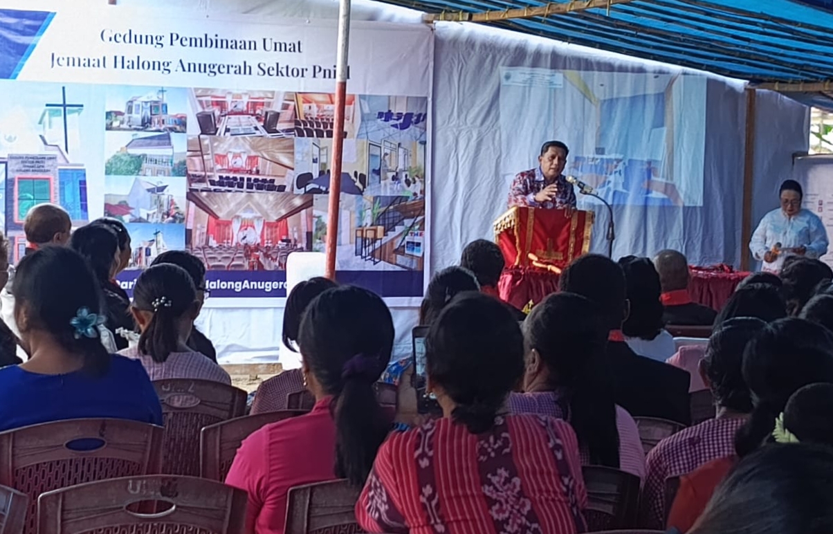 Acara peletakan batu pertama diawali dengan ibadah singkat yang dilakukan bersama, di Gereja Pniel Halong Atas, Kota Ambon, Sabtu (28/6/2025).