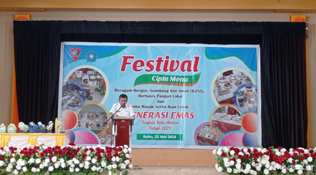 Ambon, Nusainanews.com – Pemerintah Kota Ambon melalui Dinas Pertanian dan Ketahanan Pangan Kota Ambon sukses menyelenggarakan kegiatan festival beragam menu bergizi seimbang dan aman (B2SA) berbasis pangan lokal serta lomba masak serba ikan untuk generasi emas tingkat Kota Ambon 2024.