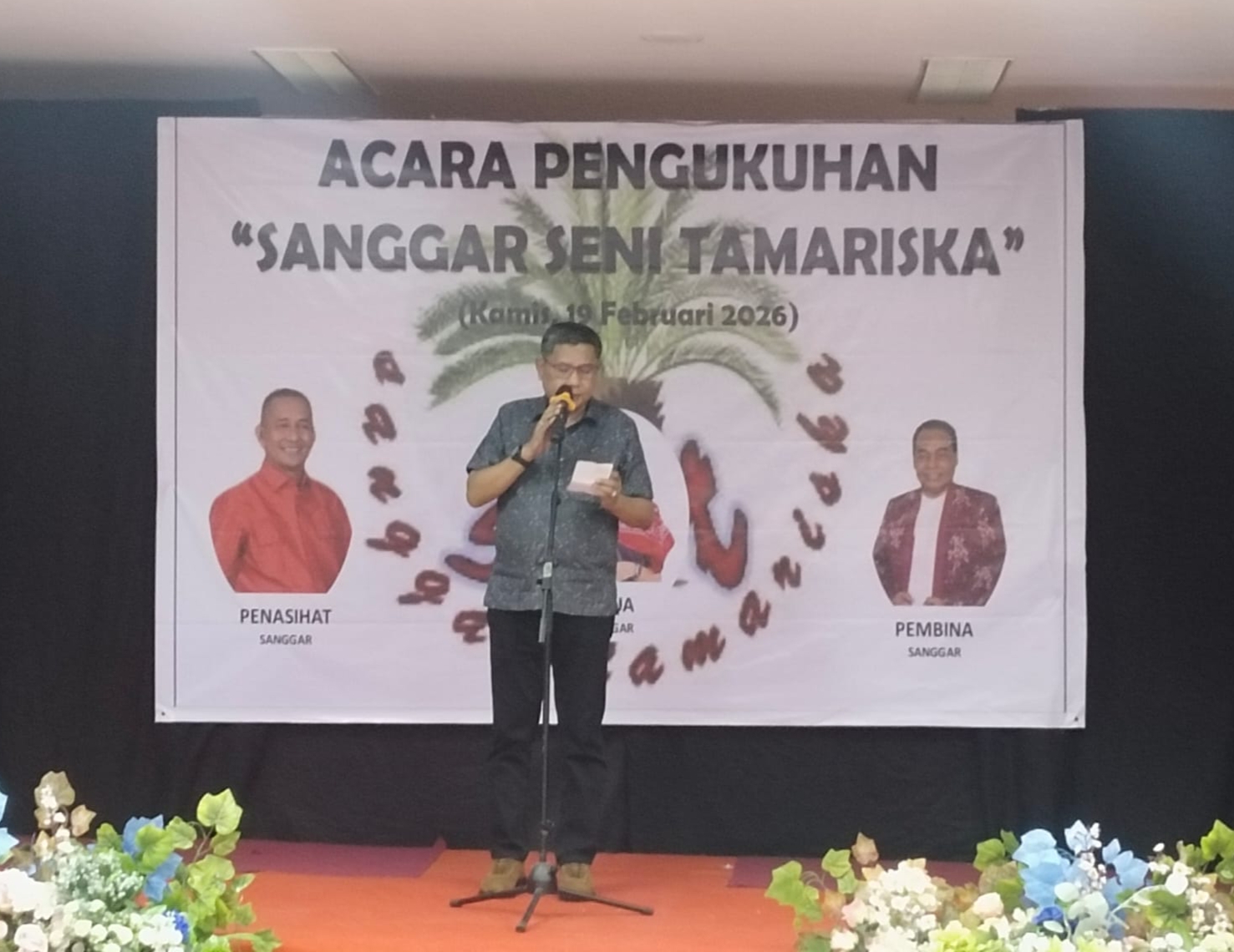Dalam lampiran berita acara pengukuhan, ditetapkan susunan pengurus Sanggar Seni dan Budaya Tamariska sebagai berikut: