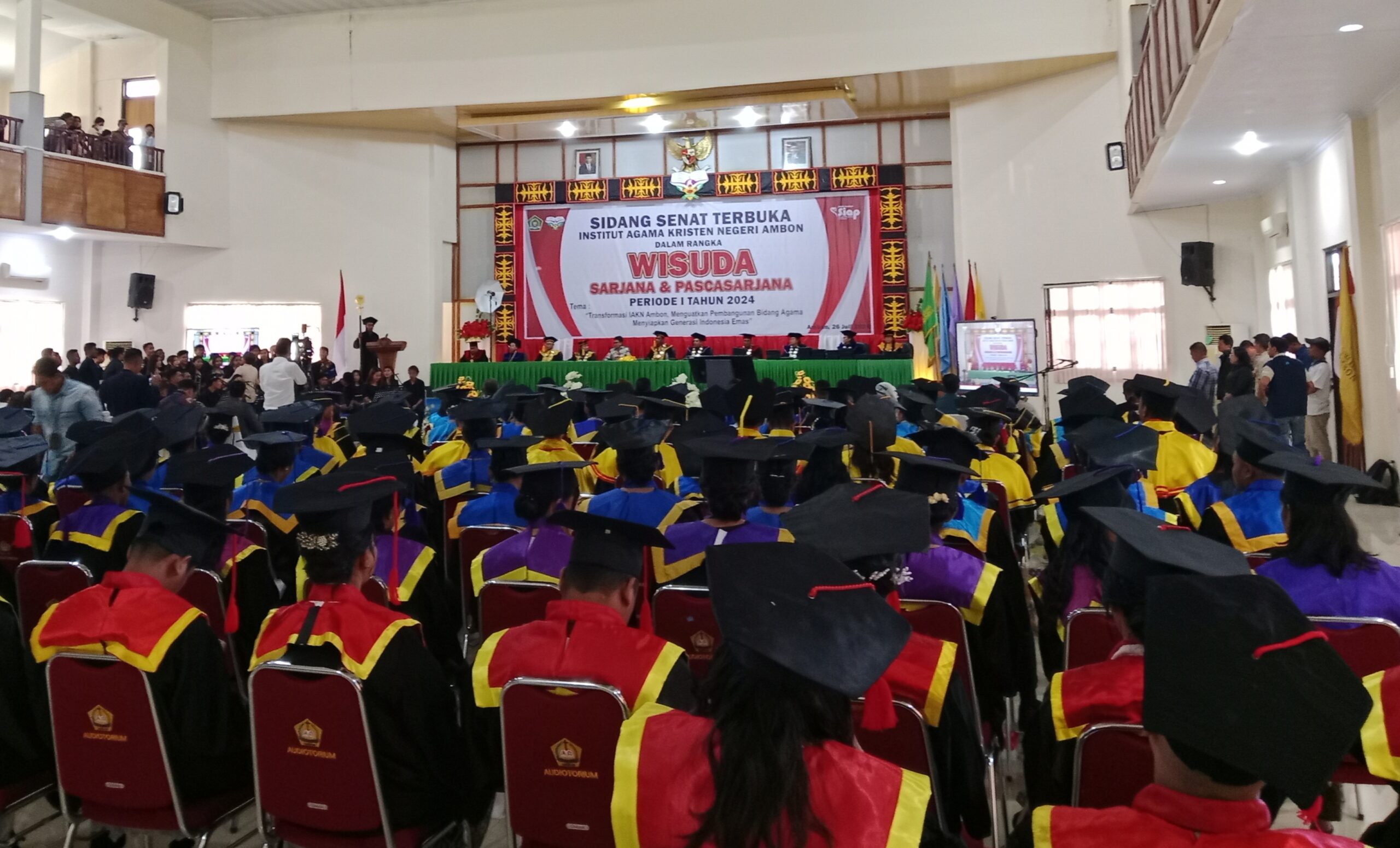AMBON, Nusainanews.com – Sidang Senat Terbuka Institut Agama Kristen Negeri (IAKN) Ambon dalam rangka Wisuda Sarjana dan Pascasarjana Periode I Tahun 2024.